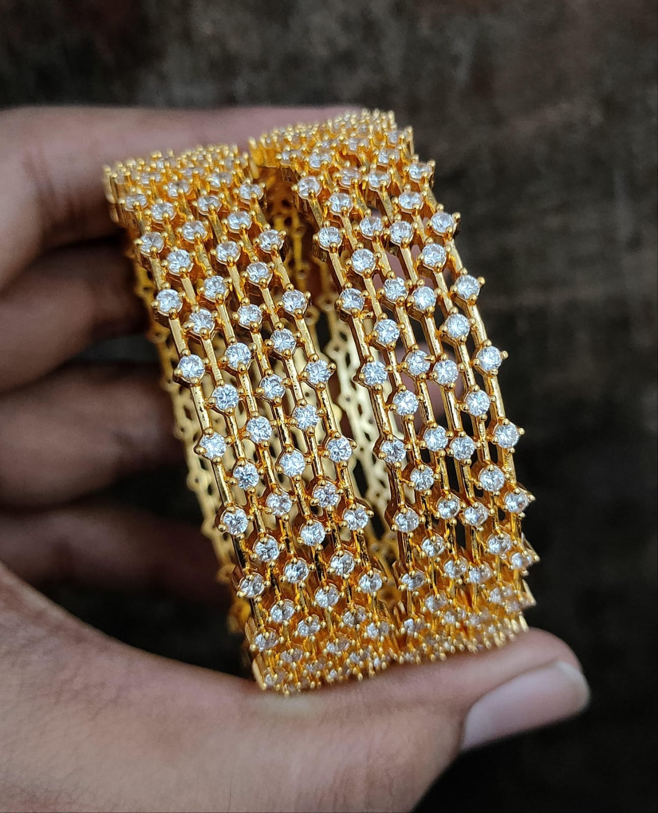 Elegant American Diamond Gold-Plated Bangles – Set of 4