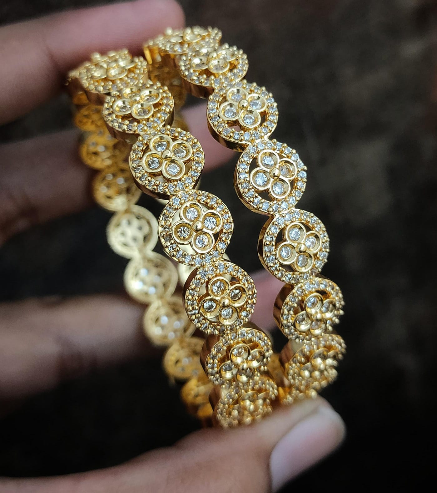 Royal Floral Round CZ Bangles – Set of 2